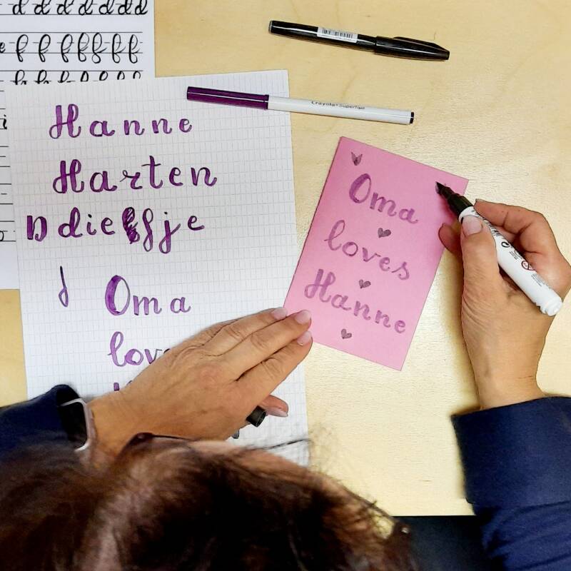 Handletteren is niet hetzelfde als schrijven. Het is letters “tekenen” in allerlei vormen en gaat dus veel verder dan je handschrift.