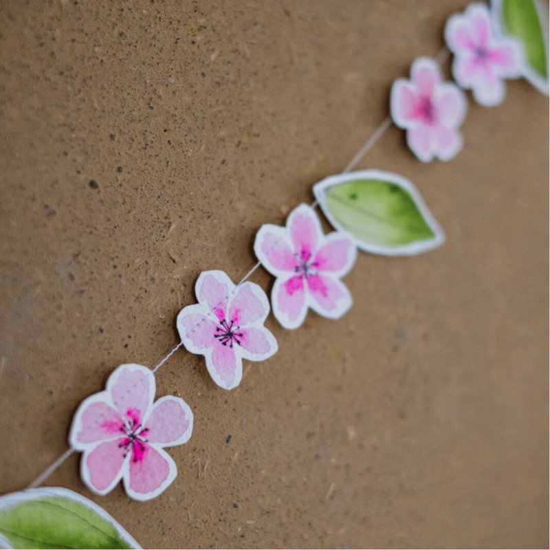 Om te beginnen schilderen we met aquarel enkele eenvoudige vormen of figuren die de elementen van onze slinger zullen worden. Bloemen, blaadjes, bessen, aardbeien, vlaggetjes, vlinders,… Ik deel daarbij mijn ervaringen, tips en trics.