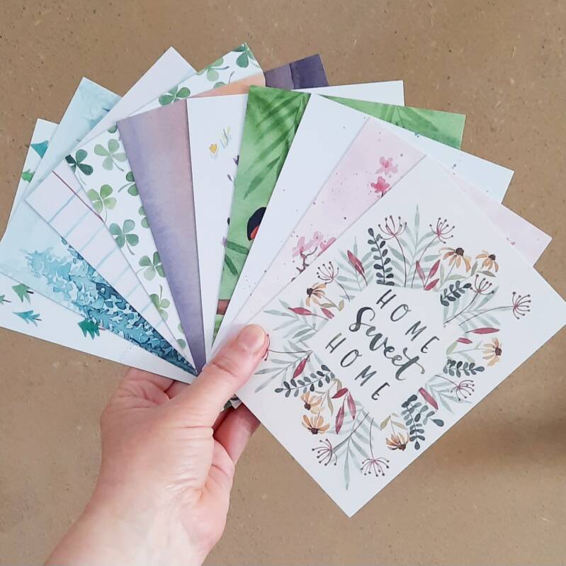 Ik stelde de pakketjes samen met een willekeurgie keuze aan kaartjes maar ik zorgde er wel voor dat er altijd voldoende kaartjes in zitten die je kan gebruiken voor verjaardagen.