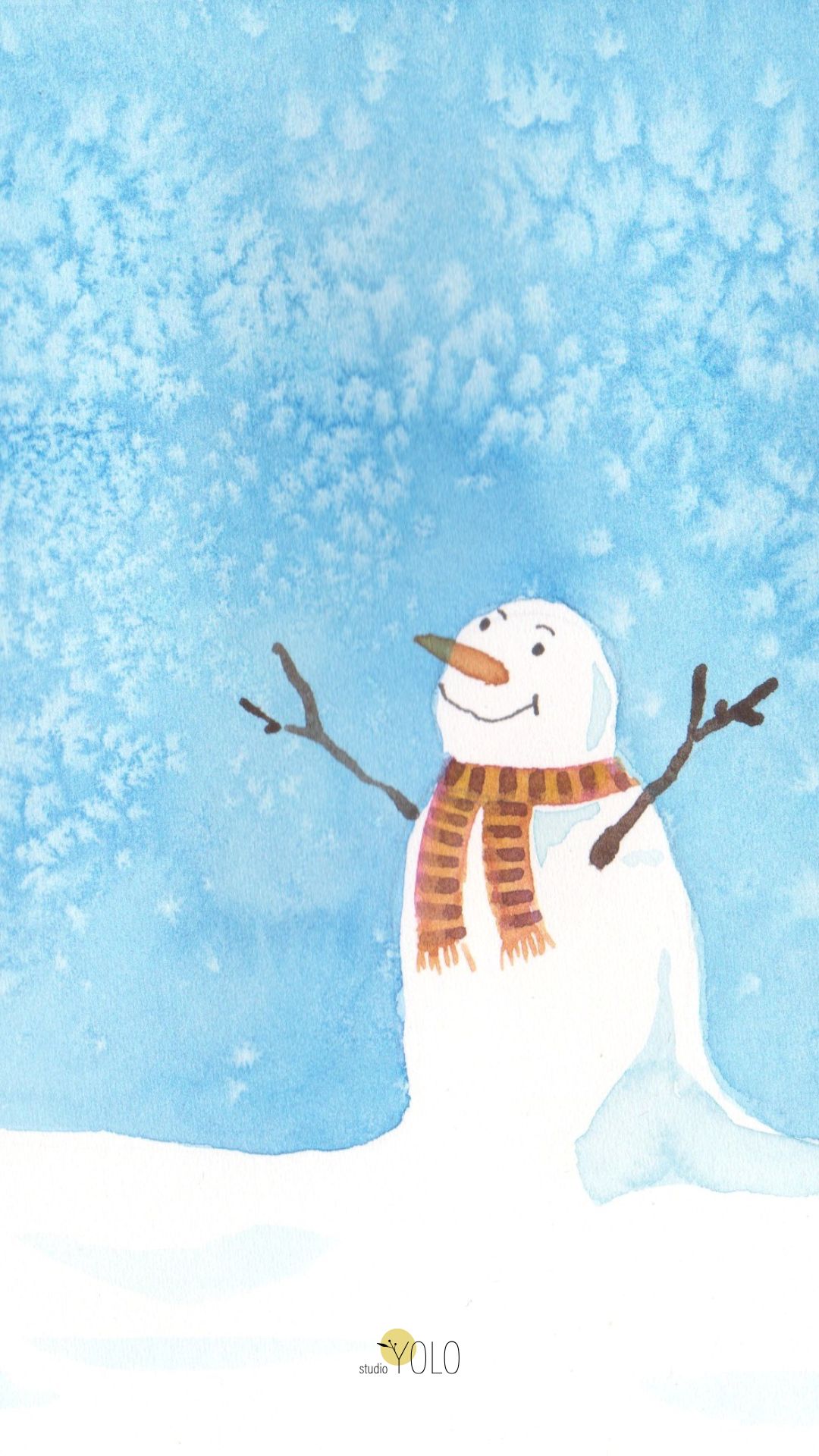 Daarom krijg je vandaag een achtergrond met een illustratie van een vrolijke sneeuwman die ik schilderde voor de nieuwe kaartjes.