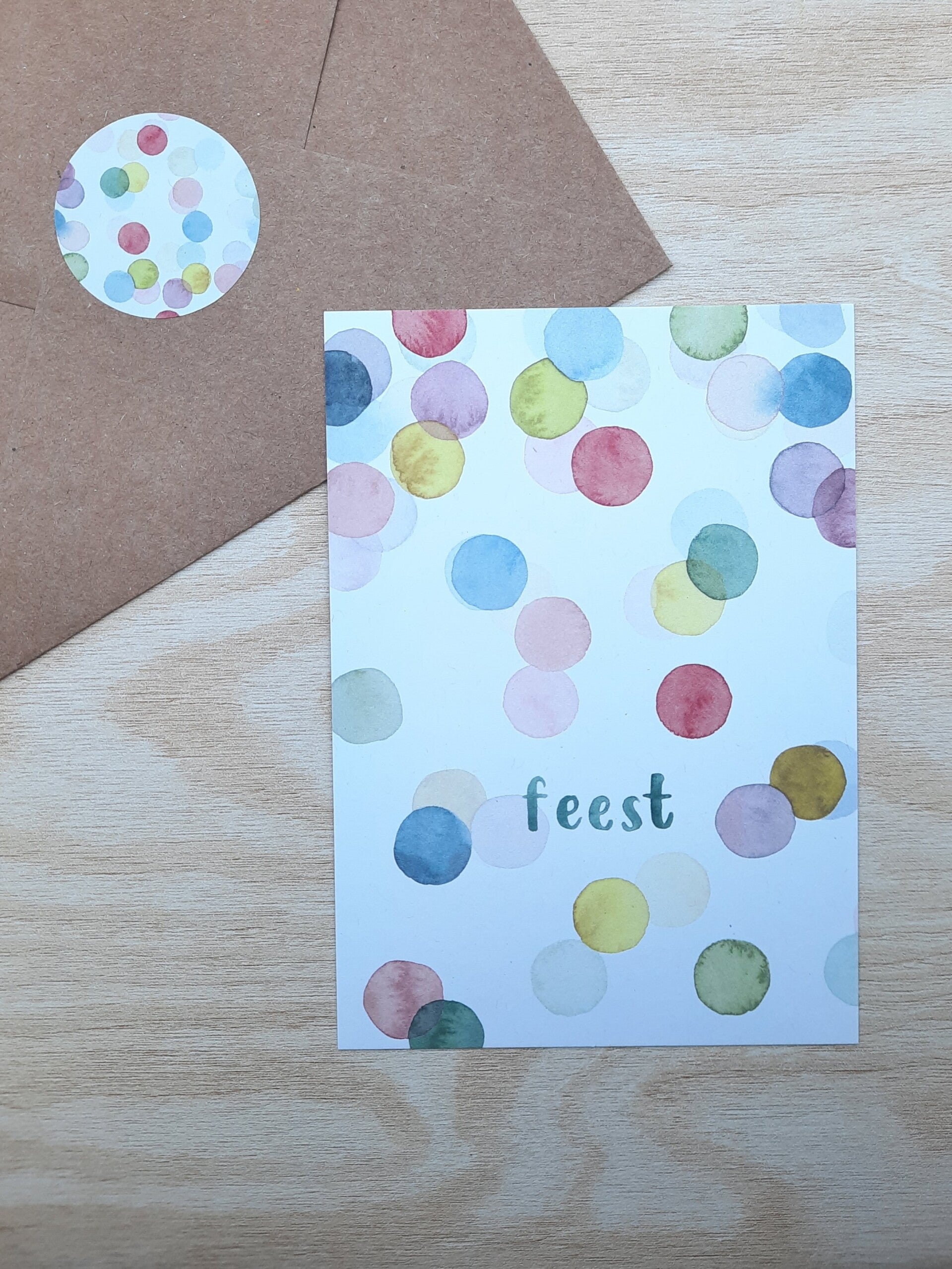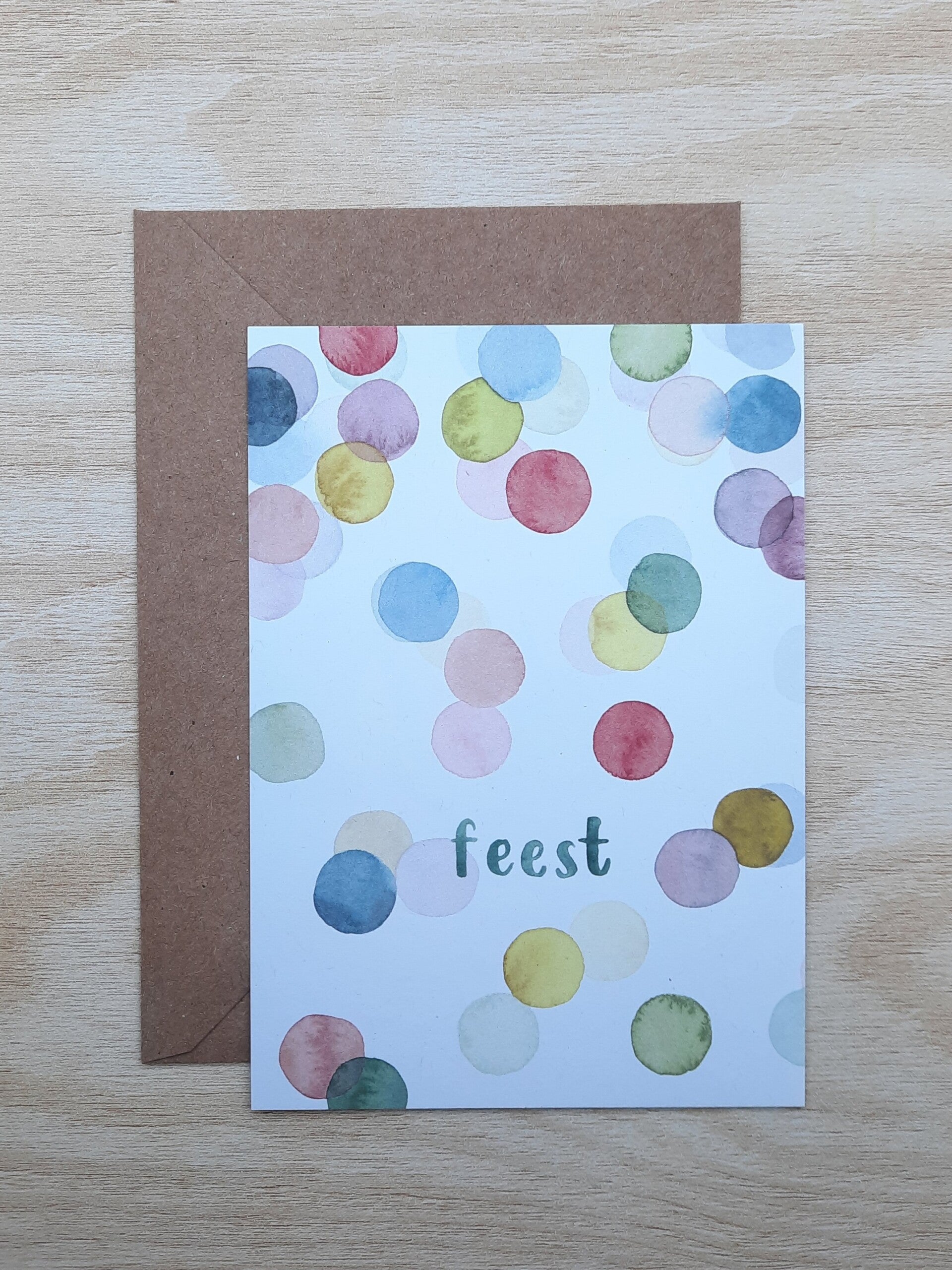 Dit vrolijke kaartje met speelse confetti en levendige kleuren is perfect voor elke feestelijke gelegenheid. Gebruik het als kaartje voor een verjaardag, communie, lentefeest, jubileum of om iemand te feliciteren met het afronden van de examens.